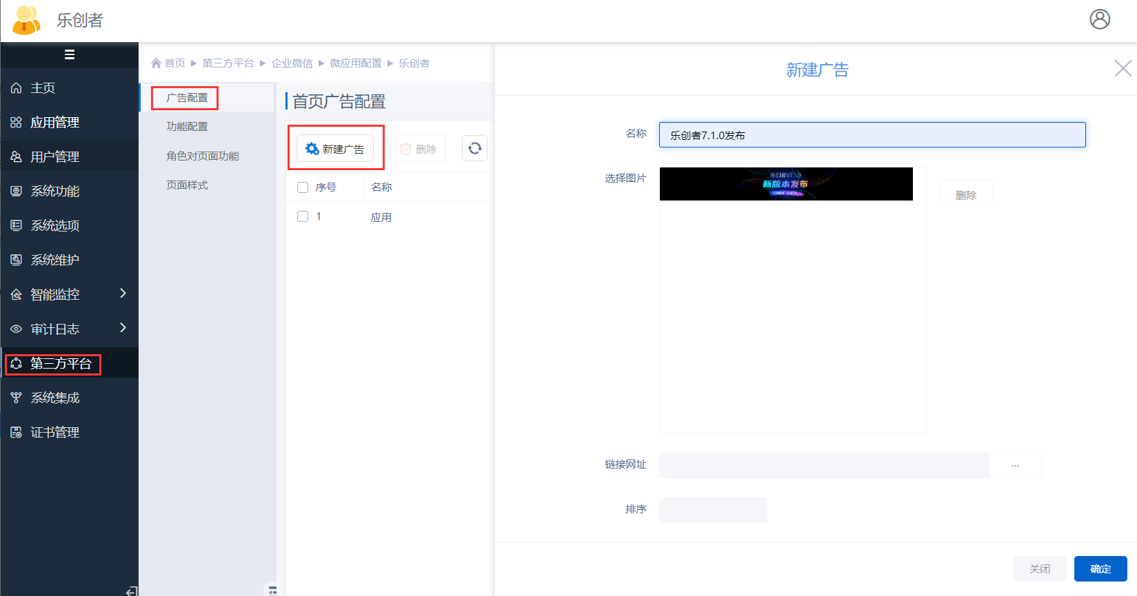 管理员登录乐创者门户,需要配置企业微信及微应用相关信息。
