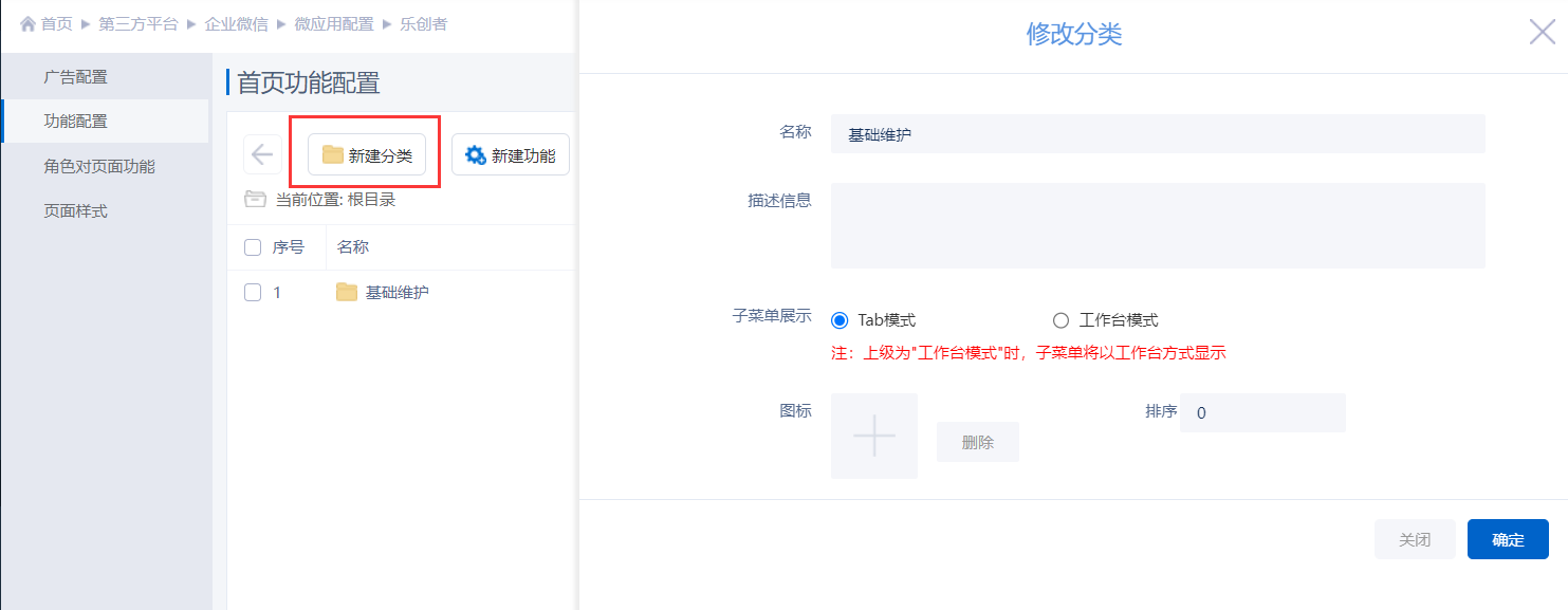 分类和功能都配置好后,我们会发现在微应用中,仍然会看不到这些分类和功能,是因为还没有给他们分配访问权限。