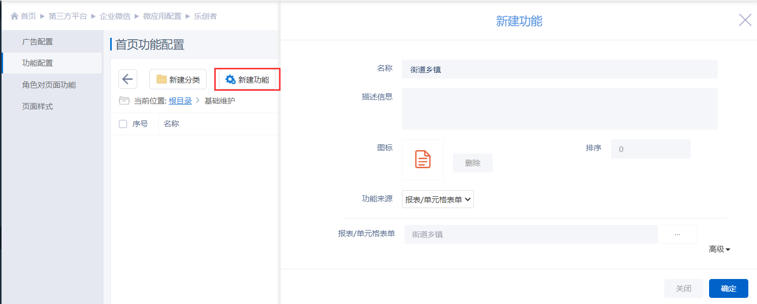 微应用功能设计配置,主要包括:广告配置、功能配置、角色对页面功能、页面样式。