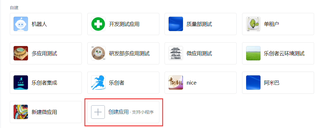 拉到页面底部,在“自建”分类下面,点击【创建应用】