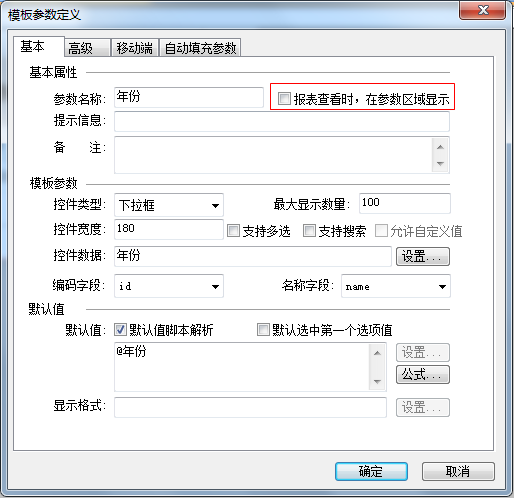 用于接收变量值的参数一般不需要显示,参数不勾选“报表查看时,在参数区域显示”即可。