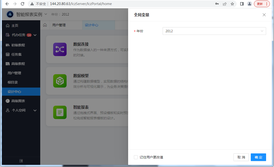 更改后,可选择是否“记住用户更改值”,勾选后保存,将记住本次用户变更的变量值,下次登录访问时将默认显示此次记住的变量值。