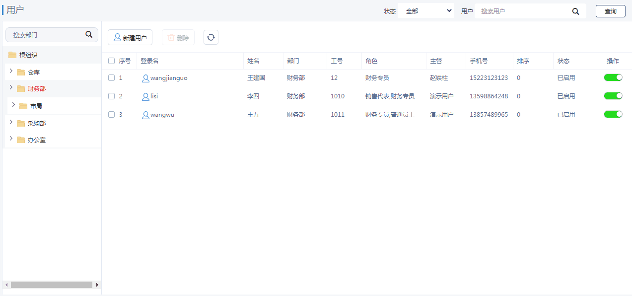 系统管理员登录系统,执行[用户管理>用户]菜单,如下图:2 功能说明