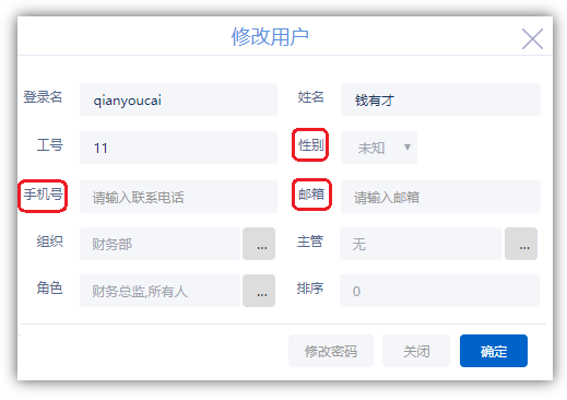 上图中,大部分信息都可以修改,但是,我们发现,性别、手机号、邮箱信息不允许修改!为什么呢?那是因为我们在做用户映射的时候,没有为这些信息指定映射的字段。