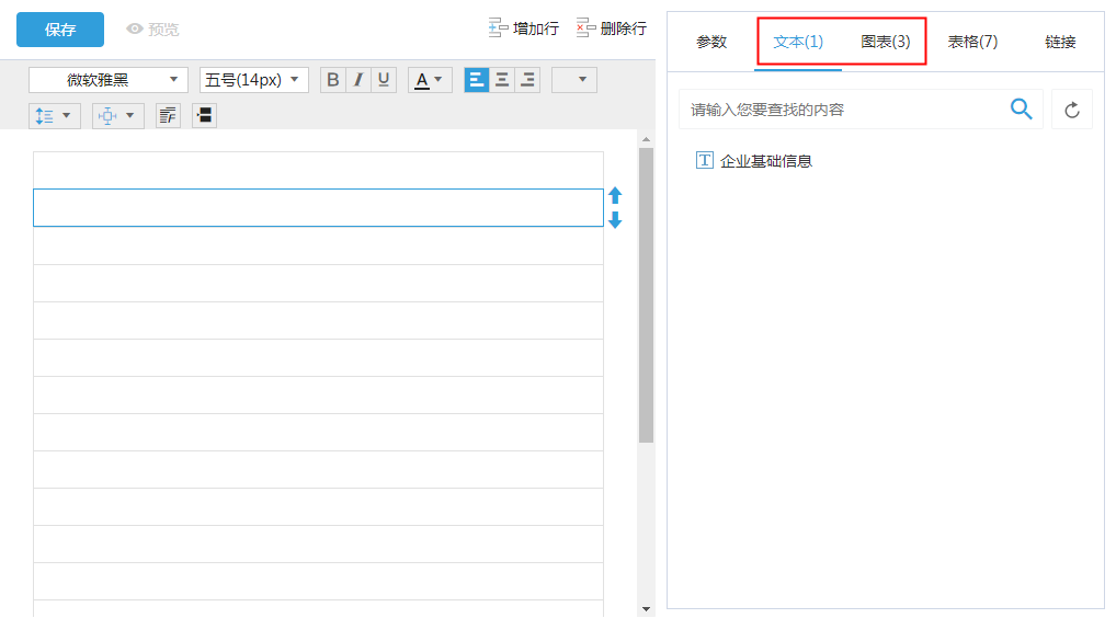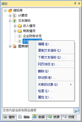 同样使用“张三”的身份登录设计器,此时“张三”则拥有了“企业基本信息”的编辑权限,即可以对指标可以进行修改、下载、移动、删除等操作。如下图: