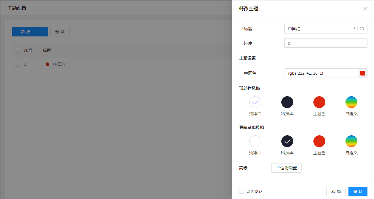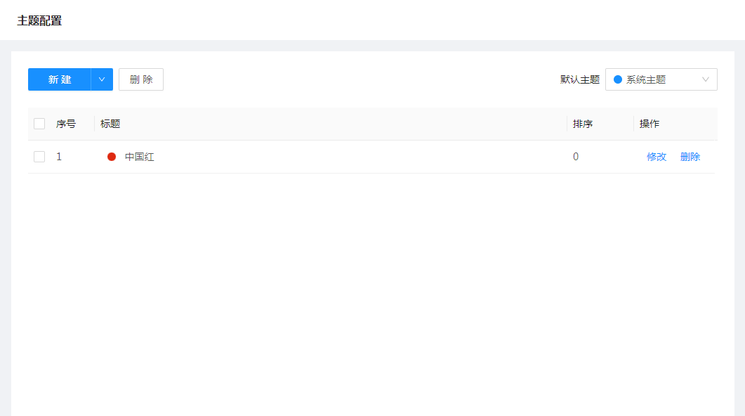 当默认主题不适合当前系统风格时,可由系统管理员通过“主题配置”自定义主题,可以配置多套主题,用户按需选择符合当前系统风格的主题即可。