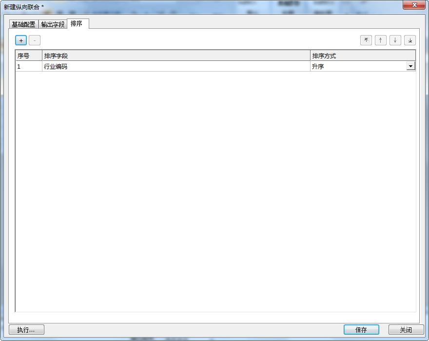 按需选择需要进行排序的输出字段,并设置对应的排序方式。比如:按照“行业编码”升序进行排列,设置如下:
