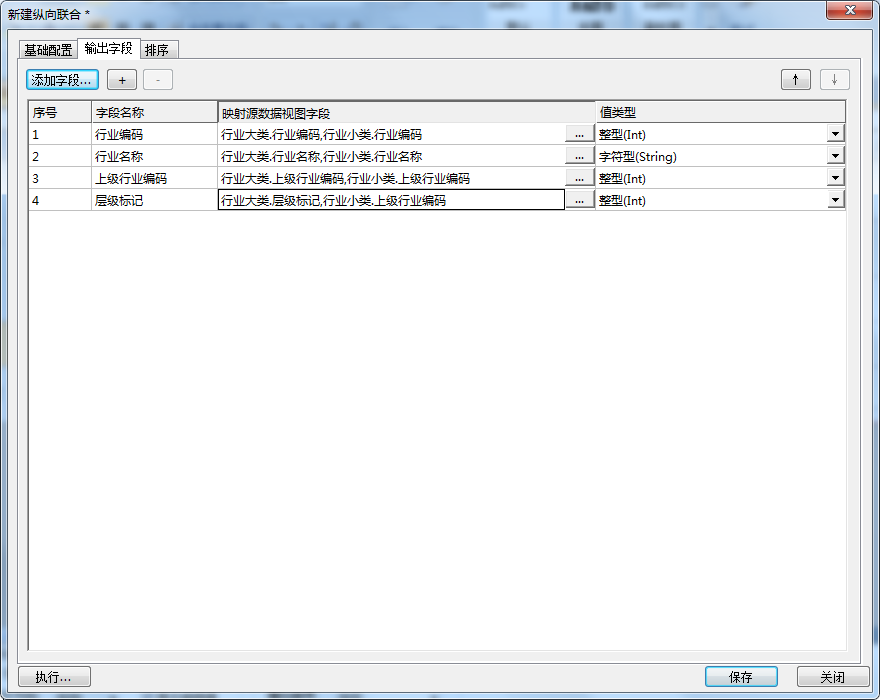 按照以上方式逐一配置好输出字段映射的“行业小类”对应字段,如下图: