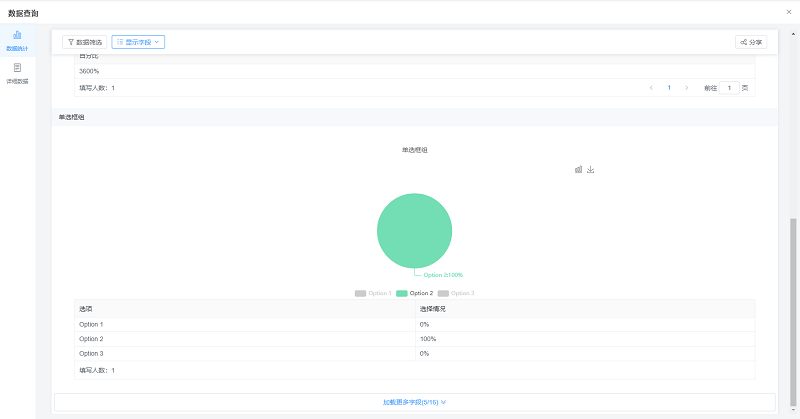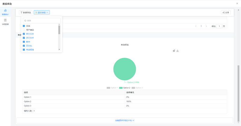 以图表形式统计每个字段填写情况,进行对应数据分析。