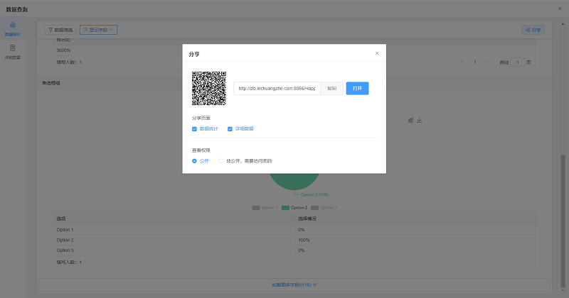 点击数据查询中“分享”按钮可分享数据查询结果: