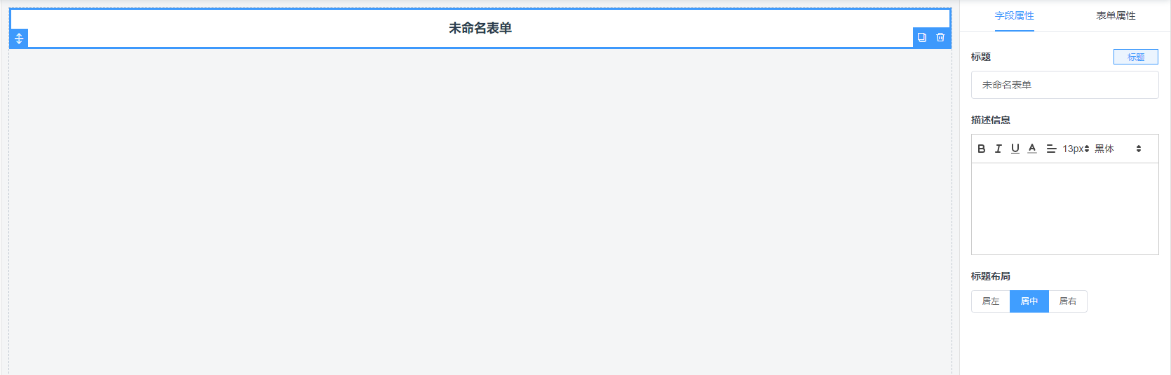 目录 搜索 展开 云表单简介快速入门表单管理表单设计制作过程基本操作表单组件标题封面分割线基础字段单行文本多行文本数字百分比单选框组多选框组日期时间下拉框下拉复选框多级下拉开关评分高级字段文件定位省市区子表单表格单选表格多选表格文本表格数字表格组合部门成员字段部门成员自动填充联动过滤选项关联表单属性移动端页面风格字段标题布局显示字段序号分项填报保存校验拓展功能基础设置表单提交表单预览表单发布公开发布定向发布数据查询专题介绍常见问题 暂无相关搜索结果! 标题 表单设计区域默认生成一个标题组件;同一个表单可添加多个标题。作者:guolibing 创建时间:2023-06-21 13:51最后编辑:guolibing 更新时间:2023-06-26 15:52 扫码关注网盛数新公众号,获取更多帮助资料 上一篇:无 下一篇:无 提交评论