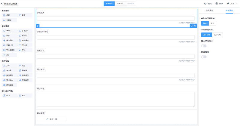 目前,云表单的字段标题布局提供了2种方式:左右布局和上下布局。