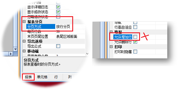 而我们大多数的场合采用的是单页填报,因为分页填报禁用了增加行的功能。