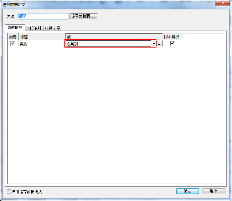 这个步骤很关键,是将参数值传递给被联动数据源参数的配置:产品数据源参数“类别”的值设置为报表参数“类别”,如下图: