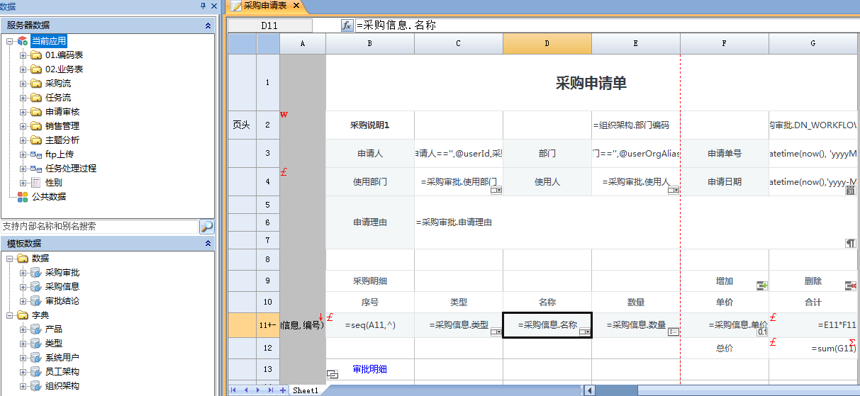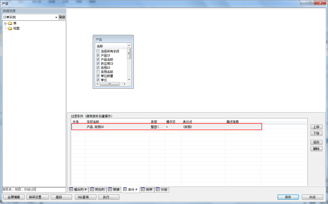 其中,类型和名称均配置为下拉框,类型引用的数据源为“类别”,名称引用的数据源为“产品”。