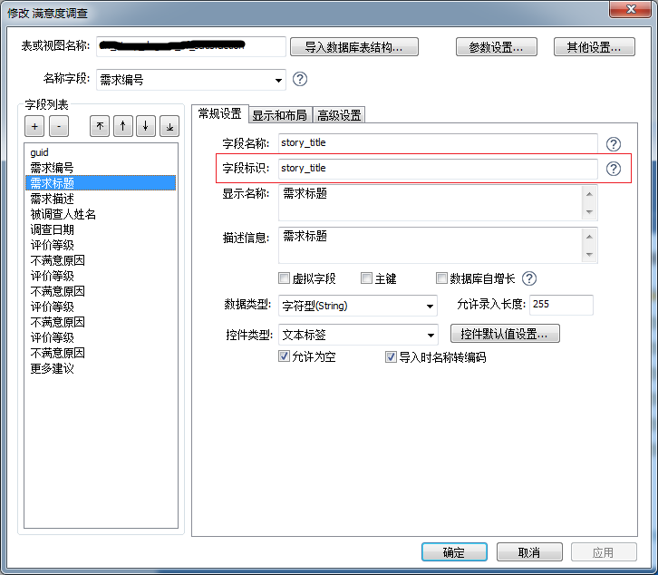 字段标识:在元数据中定义的,用于唯一标识字段的名称;可以有效防止前后端数据交互时,对数据库表结构的暴露;