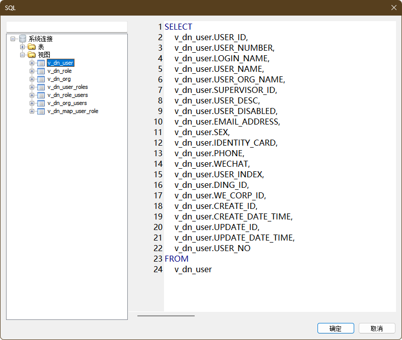 (2)还需要填写一个SQL语句用于取数,且该SQL执行后的输出内容需要与该元数据匹配上。如果已经选定数据连接,可以在右侧【设置】按钮中自动获取当前数据连接下的数据表和数据视图,如下图所示可以直接通过拖拽自动生成SQL语句,也可以直接进行SQL语句的编写。