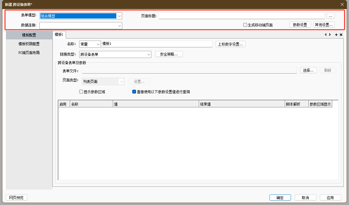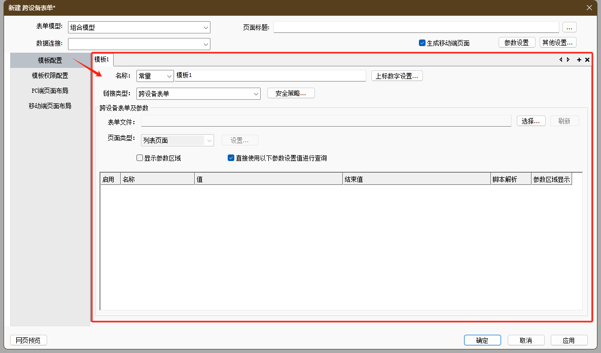 2、链接类型:目前支持跨设备表单、报表、数智大屏、系统页面和自定义链接。