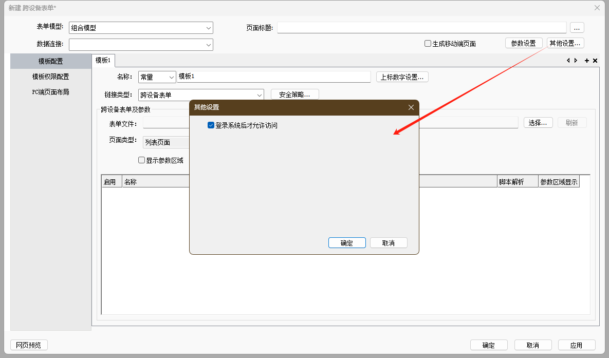 - 其他设置:允许配置【登录系统后才允许访问】,默认勾选。