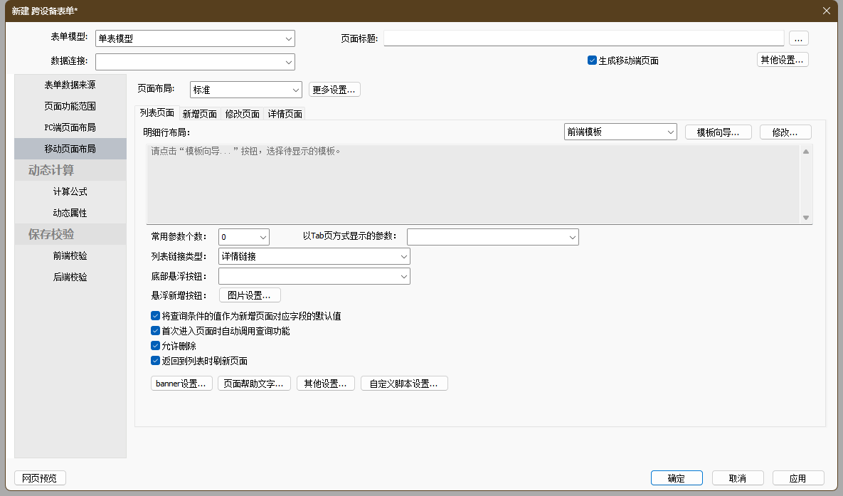 目录 搜索 展开 低代码开发简介跨设备表单跨设备表单简介快速入门使用前提系统表序号发生器表:id_codeid通用附件表:sys_attachment系统存储过程序号发生器:sp_get_uni_id制作过程第一个表单实例业务说明元数据配置概述元数据创建字段常规设置字段显示与布局字段高级设置参数设置树设置元数据字典概述制作过程表单配置概述PC单表模型-“员工信息管理”移动端单表模型-“员工信息管理”树模型-“部门管理”小结元数据元数据创建&保存字段列表常规设置显示与布局高级设置名称字段假删字段元数据树属性过滤条件参数设置控件隐藏域单行文本多行文本文本标签单选框组复选框组下拉框下拉复选框单选搜索框多选搜索框单选级联多选级联文本搜索框开关密码百分比富文本Markdown编辑器文件上传日期日期时间月份选择时间选择定位地点选择车牌号码数值单位协议阅读手写签名公式编辑单选关联搜索框多选关联搜索框短信验证封面标题分割线子表容器表格单选自定义控件控件数据CodeTableEasySearch表单表单模型单表模型主从模型树模型视图模型多对多模型组合模型关联导航模型关系对应模型扫码模型文档编辑模型文档编辑模型系统表wps文件信息表:WPS_FILE_INFOwps文件历史版本信息表:WPS_FILE_VERSION_INFOwps用户信息表:WPS_USER_EXTEND列表联动模型表单数据来源字段重载参数重载动态重载数据权限数据回写高级设置页面功能范围页面操作概述系统操作新增导入导出修改删除多删树操作自定义操作操作权限操作排序事件配置概述配置技巧SQL事件存储过程事件数据视图事件元数据执行事件短信发送钉钉消息浙政钉消息微信消息企业微信消息系统通知消息数据开发任务事件工作流事件(终止流程)暂存配置PC/移动页面布局概述PC页面布局表单布局打开模式页面显示相关配置列表功能设置操作列锁定列分组设置表格行样式移动页面布局页面布局列表明细行布局前端模板语法说明后端模板语法说明页面显示相关设置banner设置更多统计设置页面帮助文字页面帮助文字:详细帮助模版自定义脚本(待完善)动态计算计算公式动态属性保存校验概述前端校验后端校验从表设置表达式后台表达式前台表达式样式个性化样式跟随门户主题专题介绍表单数据标签样式显示表单附件存储策略和迁移方式说明利用从表实现附件管理表单数据变更日志记录功能数据变更日志系统表主模版日志表:dn_create_operation_log表级别日志表:dn_create_table_operation_log行级别日志表:dn_create_row_operation_log字段级别日志表:dn_create_field_operation_log详情页面评论功能评论功能系统表业务点赞表:business_agree_user_info业务收藏表:business_collect_user_info用户评论点赞表:business_comment_agree_user_info用户评论表:business_comment_user_info评论业务附加信息表:business_detail_infoPC详情字段控件化展示从表记录批量快速添加功能BDO生成CodeTable和EasySearch数据视图BDOeasysearch微信小程序中使用跨设备表单钉钉消息事件支持卡片消息移动端列表前端vue模版说明新增页面多记录从表初始化数据填充功能输入框字数统计功能跨设备表单列表批量导出报表解决方案详情页面样式配置修改页面数据提交范围配置列表页面字段按列配置css样式单个参数输入框支持同时查询多个字段值列表页面允许编辑跨设备表单列表批量导出附件表单数据变更日志记录解决方案通过自动赋值获取文件上传控件上传的文件名称OpenOffice安装和启动跨设备表单自定义JUEL函数常见问题单元格表单快速入门产品简介入门示例卡片填报清单填报主从填报填报控件控件概述普通控件单行文字多行文字数字数值金额百分比日期日期时间时间时钟复选框密码数据控件下拉框列表框树表格列表复选框组单选框组穿梭框按钮控件新增删除多行收起展开自定义按钮文件控件数据库上传高级控件富文本前台运算填报提交回写规则执行模式子规则数据校验前端校验后端校验控件联动数据导入卡片类型表单数据导入清单类型表单数据导入多Sheet表单数据导入产品进阶填报属性数据填充分页填报多工作表填报多源填报插入和删除填报上传脚本和事件全局事件控件事件超链接刷新父窗口链接填报模式专题介绍导入数据转码单元格值唯一性校验新增行数据来源于上一行数据常见问题输入框自动获取焦点流程审批工作流简介快速入门使用前提系统表工作流默认响应表:wf_approve_history制作过程第一个工作流实例业务说明创建流程流程设计用户任务:部门主管排他网关1:部门主管是否同意排他网关2:是否存在上级领导和请假天数校验用户任务:上级领导排他网关3:上级领导是否同意用户任务:人力资源处流程表单创建绑定流程图和流程表单发布工作流设置使用入口PC端使用移动端使用工作流概述工作流分组工作流列表流程设计概述全局配置声明全局变量任务用户任务发起人任务数据处理服务任务(待完善)系统任务(待完善)脚本任务(待完善)消息任务邮件任务(待完善)边界事件定时边界事件网关排他网关并行网关包容性网关结构列表嵌入式子流程流程表单概述跨设备流程表单单元格流程表单自定义流程表单流程应用概述工作任务面板工作任务通知流程代理中心专题介绍发起人提交时显示下一步及办理人解决方案流程审批显示下一步及办理人解决方案流程审批意见分组显示解决