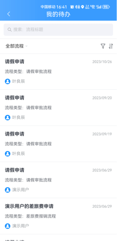 在我的待办列表中支持按流程类型和其他流程相关过滤条件对数量较多的流程进行快速过滤以提高审批效率