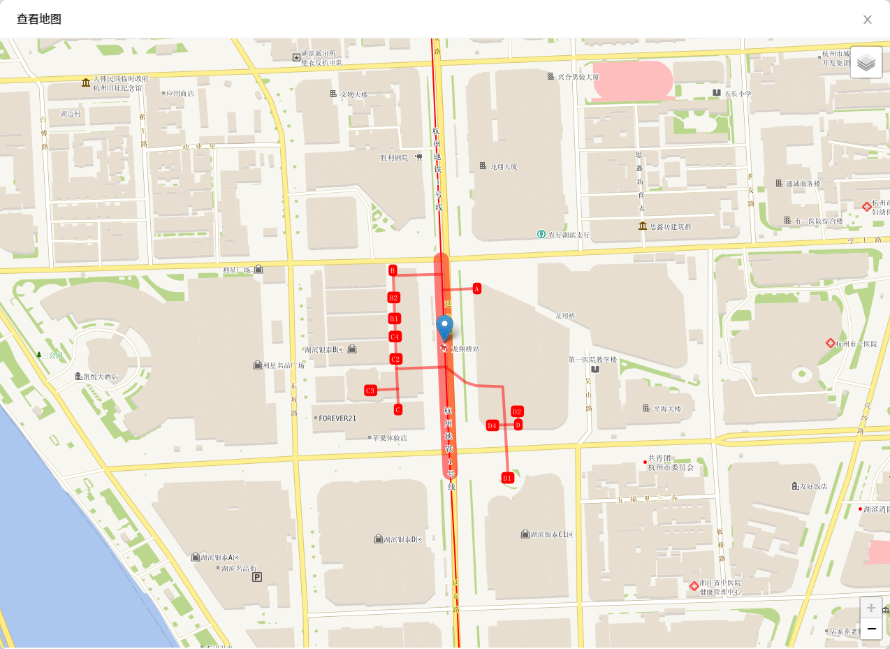 在详情页面查看字段所选地点时,仅支持切换图层和放大缩小操作。