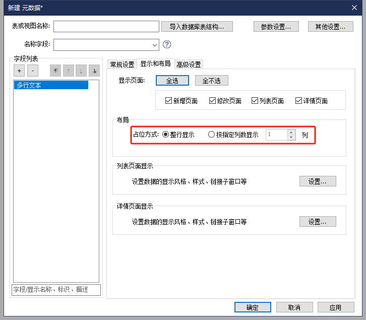 - 其他配置说明请查阅章节 元数据>字段显示与布局