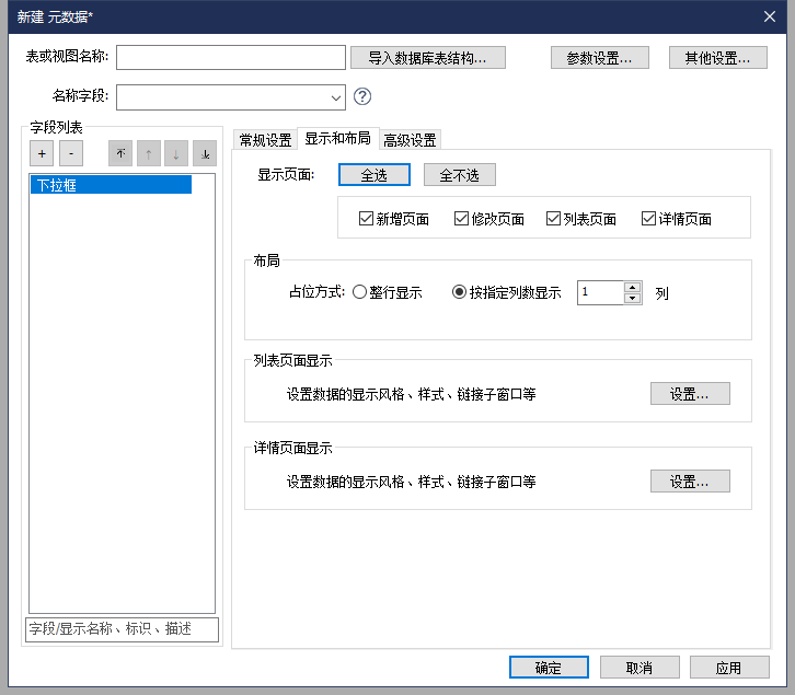 - 详细配置说明请查阅章节 元数据>字段显示与布局