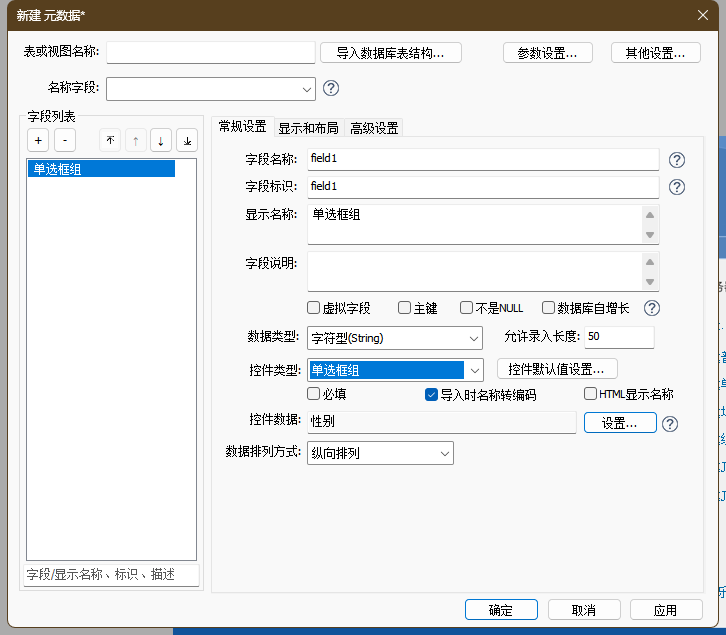 - 其他配置说明请查阅章节 元数据>字段显示与布局