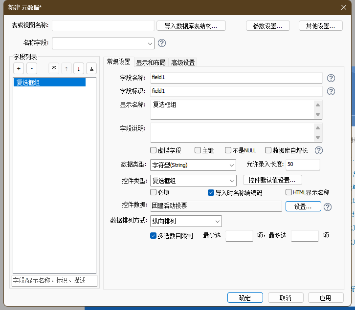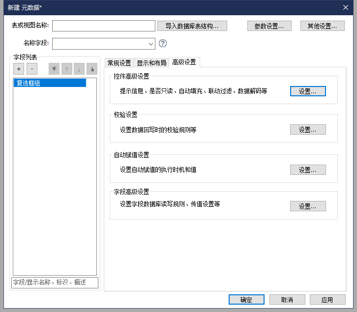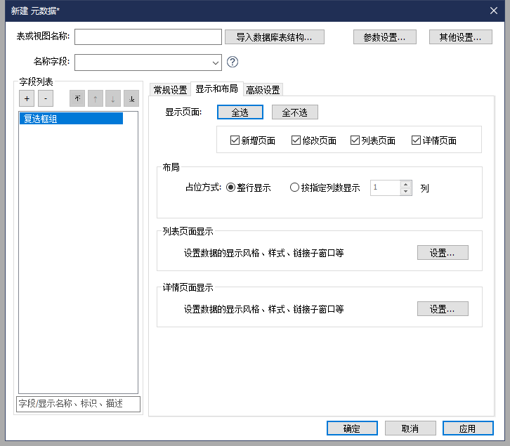 - 其他配置说明请查阅章节 元数据>字段显示与布局