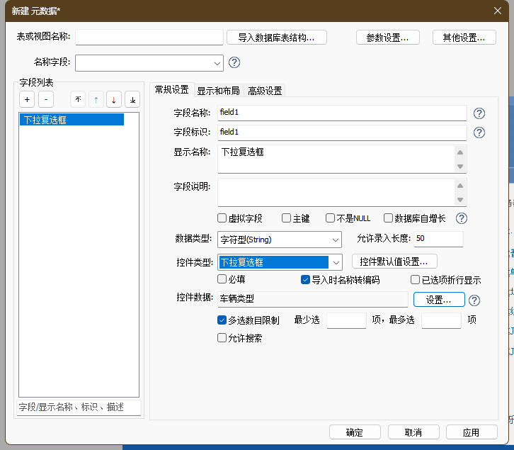 - 详细配置说明请查阅章节 元数据>字段显示与布局