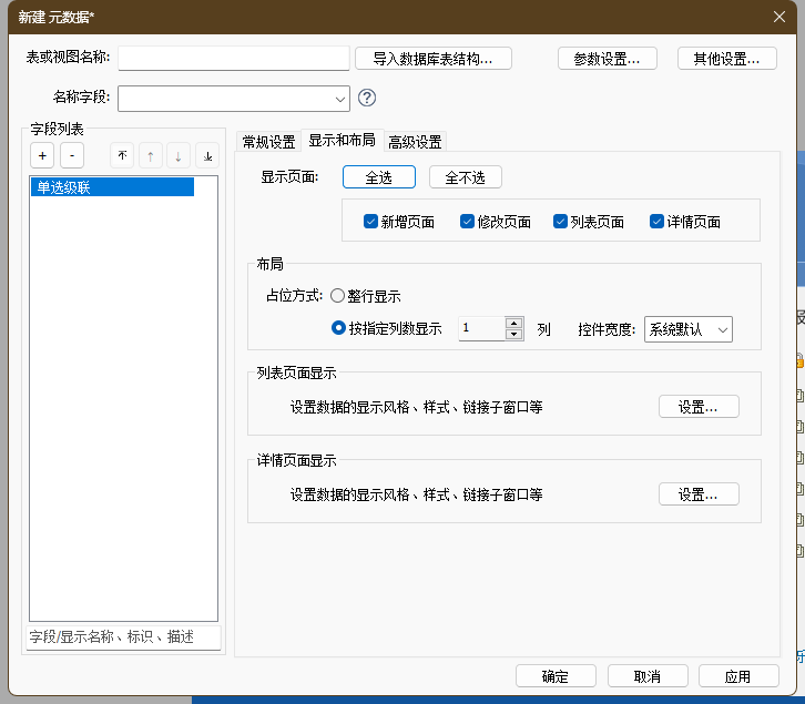- 详细配置说明请查阅章节 元数据>字段显示与布局