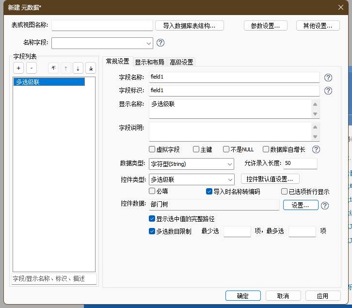 - 详细配置说明请查阅章节 元数据>字段显示与布局