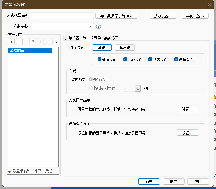 - 支持控件高级设置、校验设置、自动赋值设置和字段高级设置等,详细配置说明请查阅章节 元数据>字段高级设置