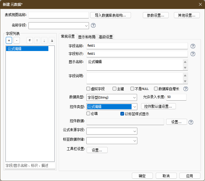- 标签样式显示 & 标签数据存储字段:满足界面显示美观需要,公式编辑选项允许选项以标签的样式显示,相应的需要一个存储字段用于存储标签数据结构,具体执行效果详见 3 显示交互-标签样式显示。