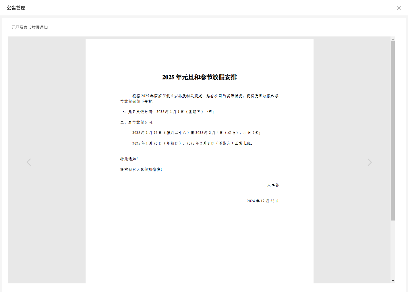 适用于需要直接预览方式展示上传文件的场景,例如公告详情页面直接预览上传的Word、PDF文档,如下图所示。
