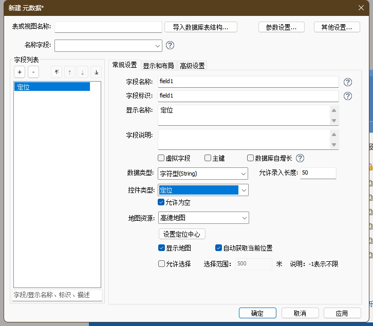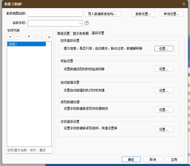 - 支持控件高级设置、自动赋值设置、读写数据处理和字段高级设置等。详细配置说明可查阅章节 元数据>字段高级设置