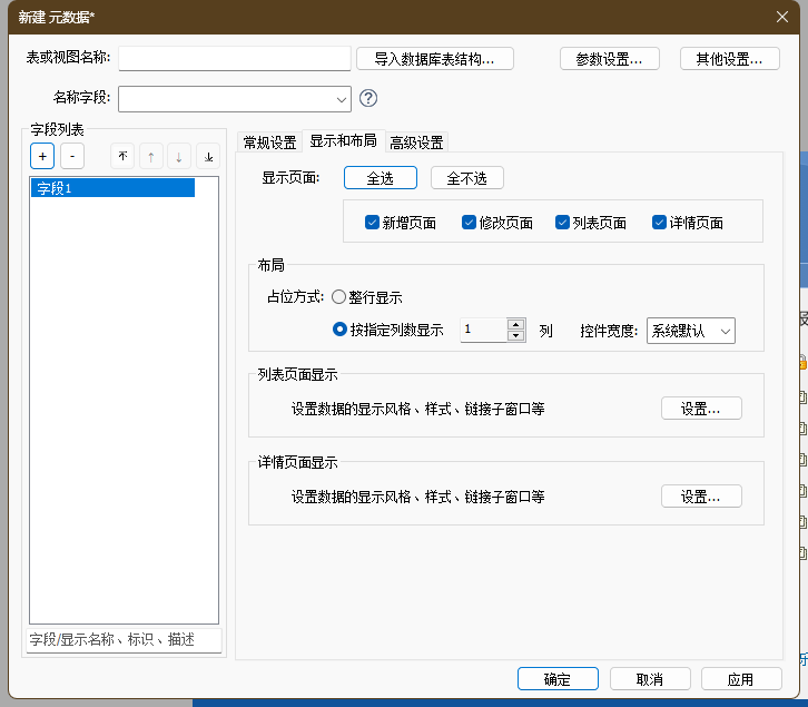 - 默认配置如上图所示,详细配置说明请查阅章节 元数据>字段显示与布局
