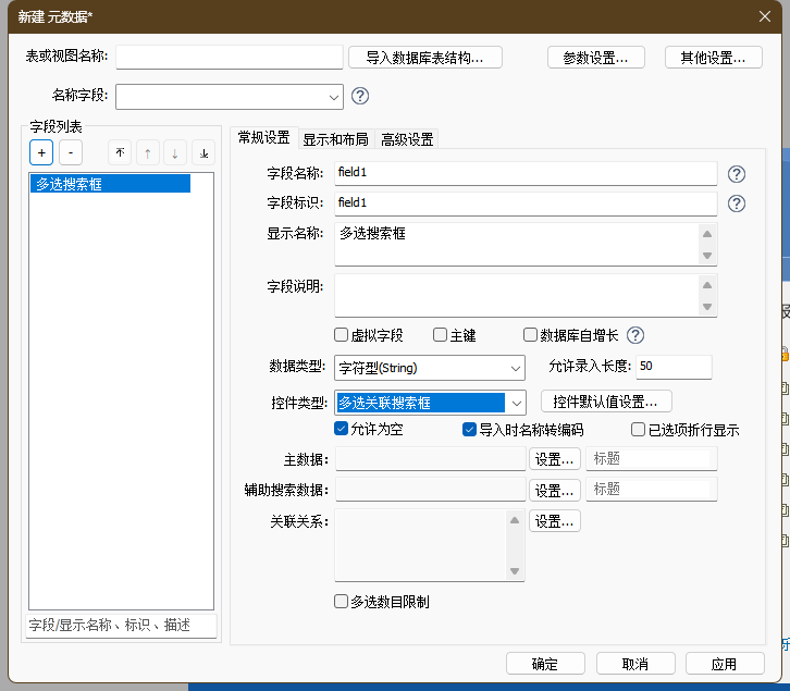 - 详细配置说明请查阅章节 元数据>字段显示与布局