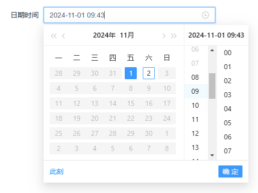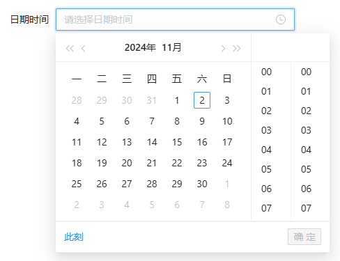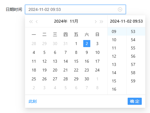 日期时间选择控件适用于在数据填报时需要精确到日期时间的场景。