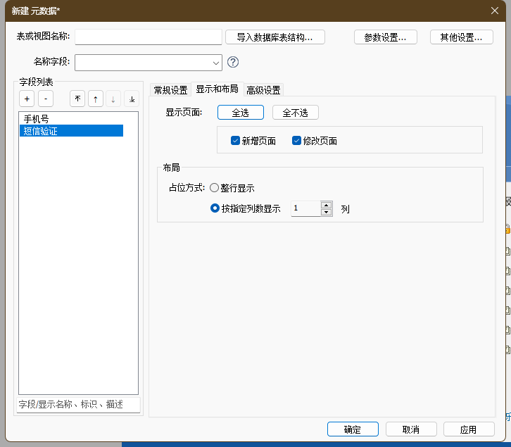 - 详细配置说明请查阅章节 元数据>字段显示与布局