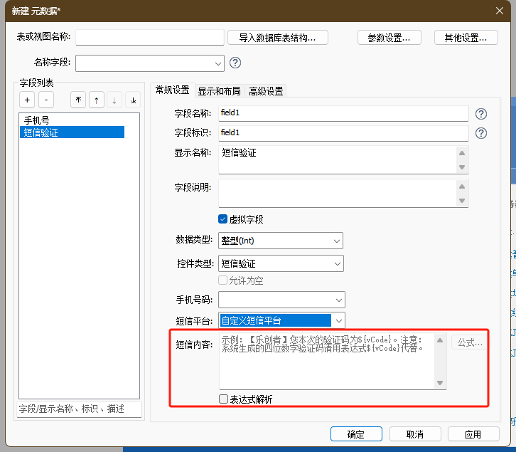 - 短信内容:支持表达式,验证码参数可使用${vCode}代替。