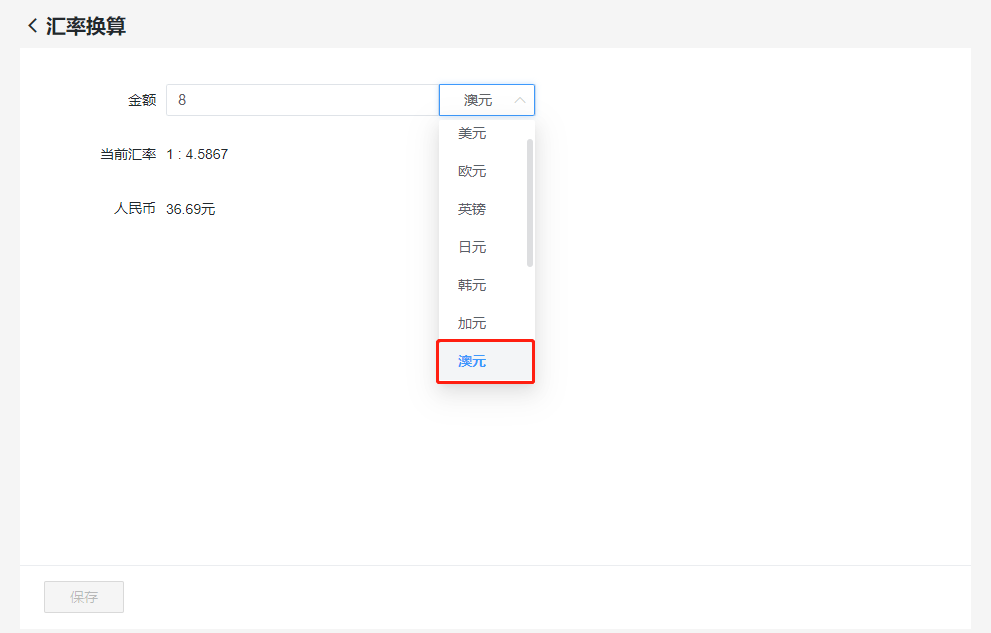 由于案例中配置了自动填充“汇率值”至“当前汇率”字段,汇率字段会随着“单位”的切换变化数值,此外“人民币”字段值存在计算公式:金额*汇率,因此金额数值变化或汇率变化也能实时折算成人民币数值。
