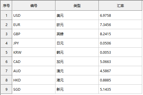 假定我们建立一个最简单的数据表,除主键以外需要存储金额数值、货币类型、当前汇率、折算人民币数额4个字段。