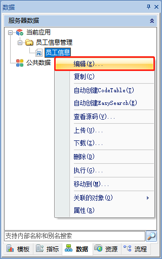 右键单击对应元数据,在展开的执行菜单列表中选择【编辑】,可以再次打开元数据配置界面对元数据进行修改。