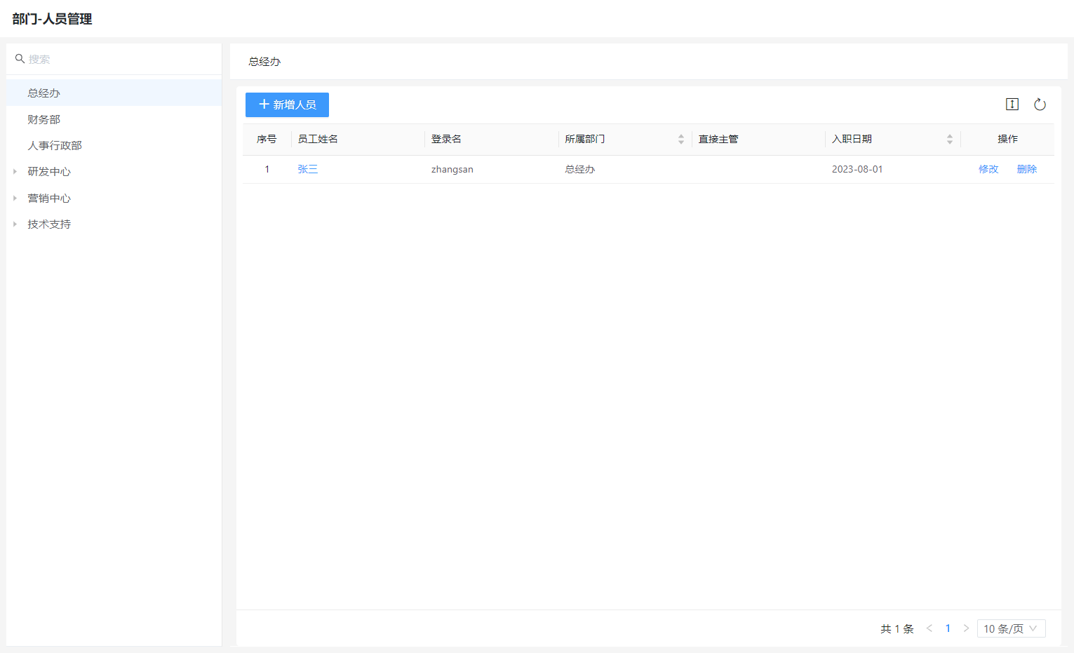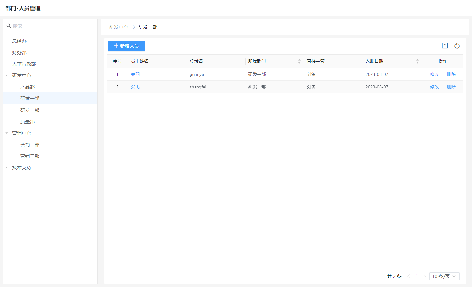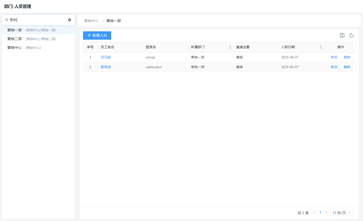 下面我们就以上面这个“部门-人员管理”页面为例介绍这类模型的配置方式。