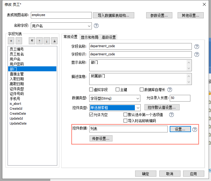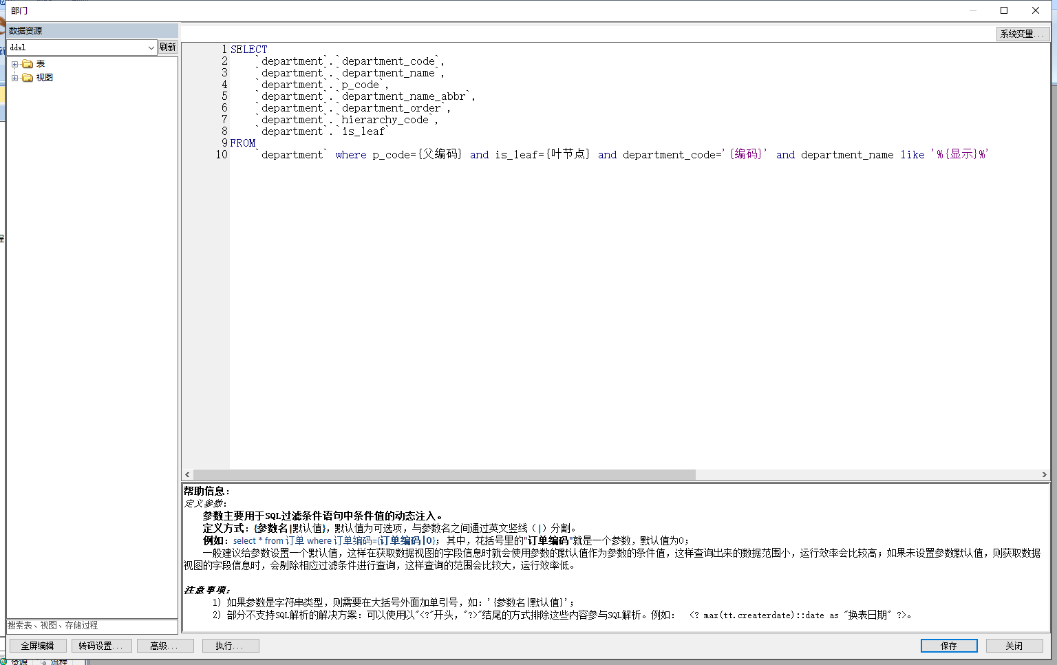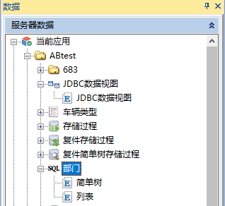 以JDBC数据视图为例,使用一个部门组织表创建了一个数据视图“部门”,如下图所示。