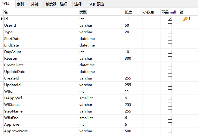 1)id:流程表单编号