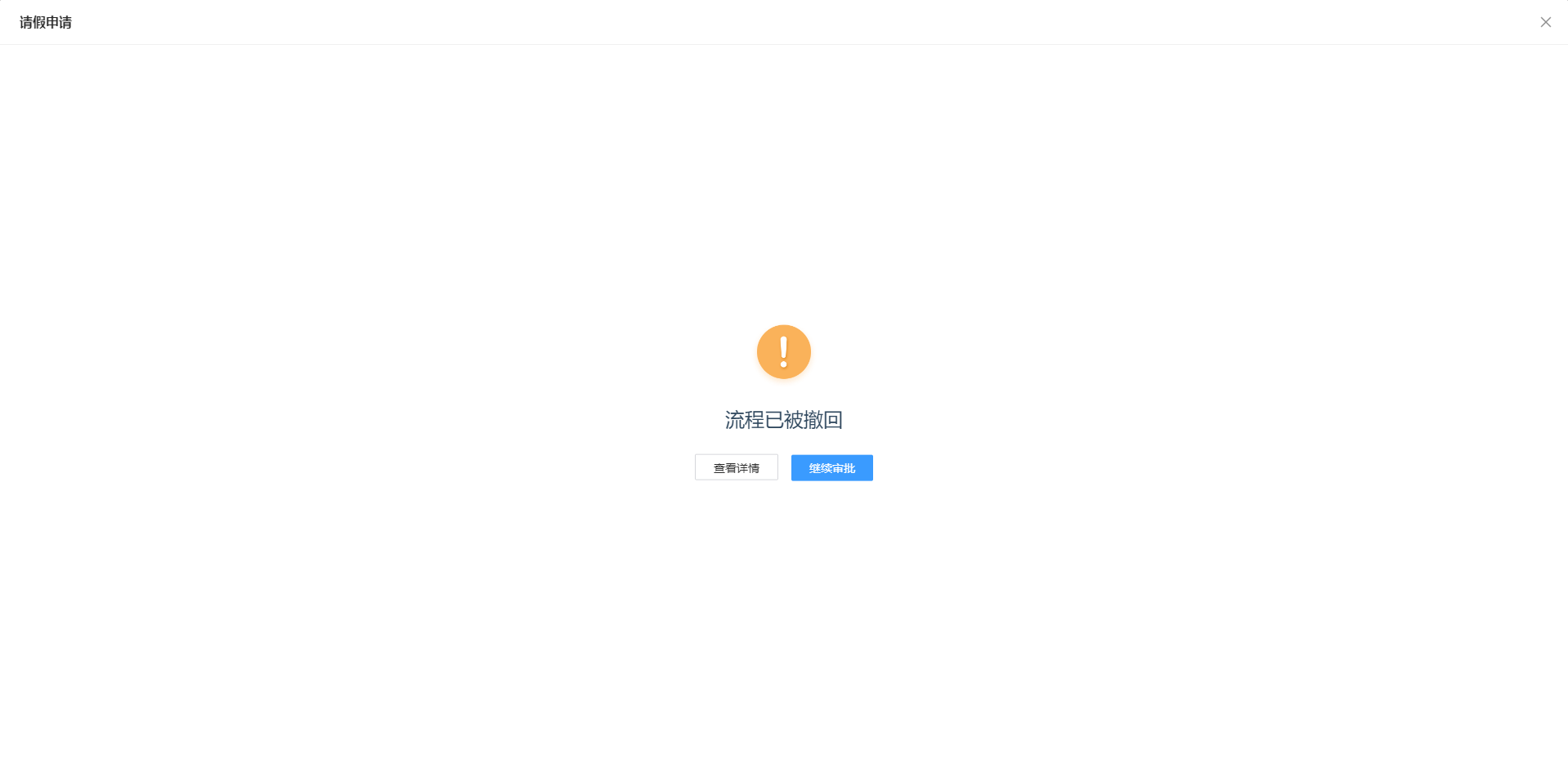 当下一步办理人已经在审批页面此时流程若被临时撤回,操作时则会提示“流程已被撤回”。