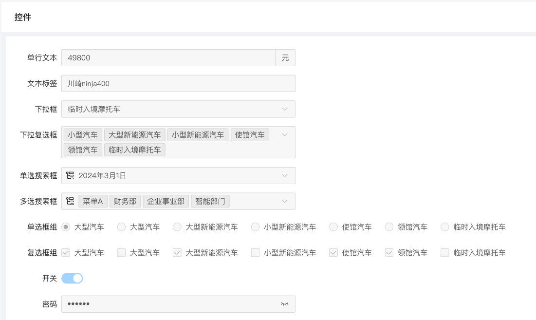 (1)PC端详情页面字段控件化显示,例如下图所示(下图仅展示了其中部分控件来示意)